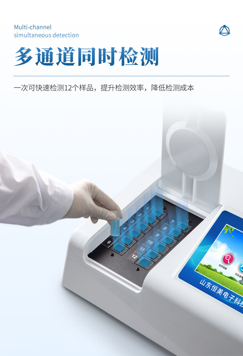 3、12個檢測通道(固態化設計),一次性可快速檢測6個樣品,極大提升檢測效率,降低檢測成本。